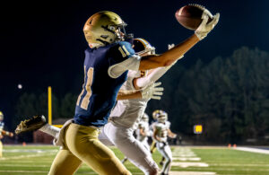 On the next play, Ty Barker connected with Takoreion Downie for a 35-yard touchdown, which shocked the crowd. Despite holding the Valley Cubs to just one first down and 41 yards behind some outstanding play from linebacker Hunter Delaney, the Golden Bears trailed 7-0.