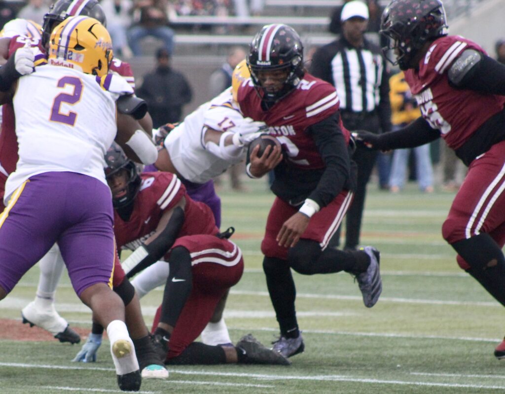 –After J’Quell Armstrong’s tipped-ball interception, Duckworth throws a 26-yard, jump-ball TD pass to Keeyun Chapman at 0:02. Conversion fails. JACKSON 30, ANNISTON 0