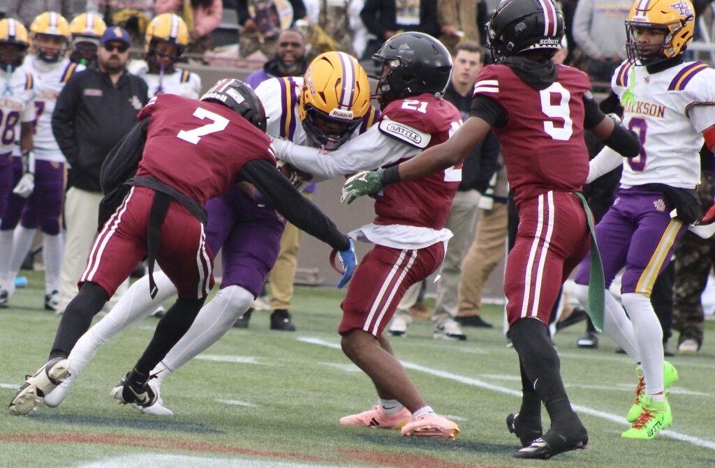 –Jackson’s Dacorious Jackson fumbles after catching a pass, and Anniston’s Malachi Hall recovers at Jackson’s 46.