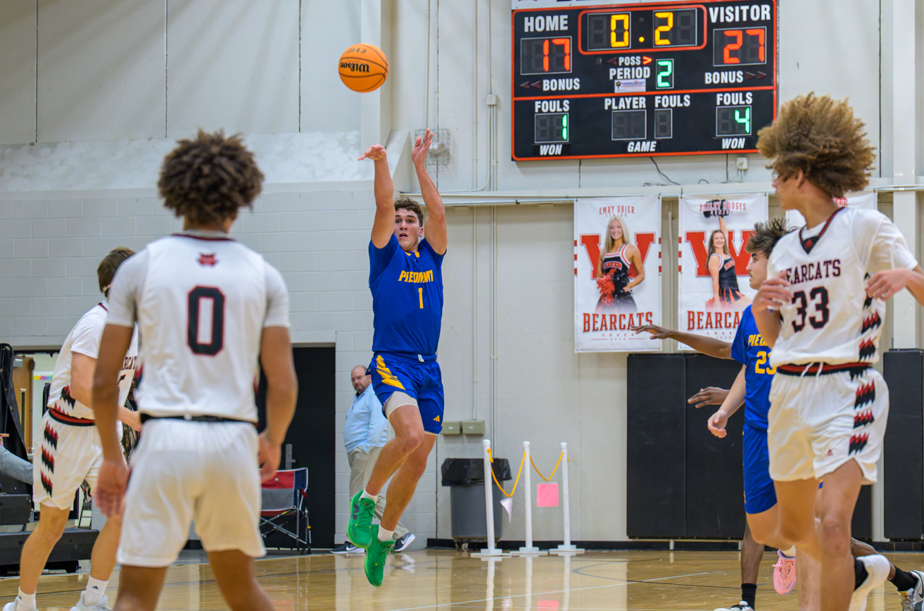 Piedmont hit 13 threes … seven from Pinto, two from Eli Johnson, two from Nick Glover and one apiece from Ben Dempsey and Ethan Tidwell. Dempsey and Taylon Swain added eight points apiece. Glover and Tidwell scored seven apiece.